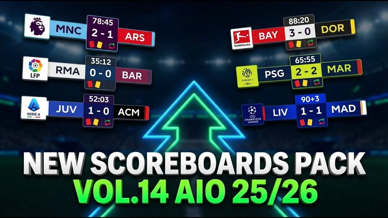 PES 2021 Scoreboard Server v14 AIO Season 2025/2026 là một bản mod không thể thiếu cho những ai muốn nâng tầm trải nghiệm chơi PES 2021. Với hàng chục bảng tỷ số chất lượng cao, tính năng tự động phát hiện giải đấu và khả năng tương thích đa nền tảng, đây thực sự là công cụ hoàn hảo để biến PES 2021 thành trải nghiệm bóng đá chân thực nhất.